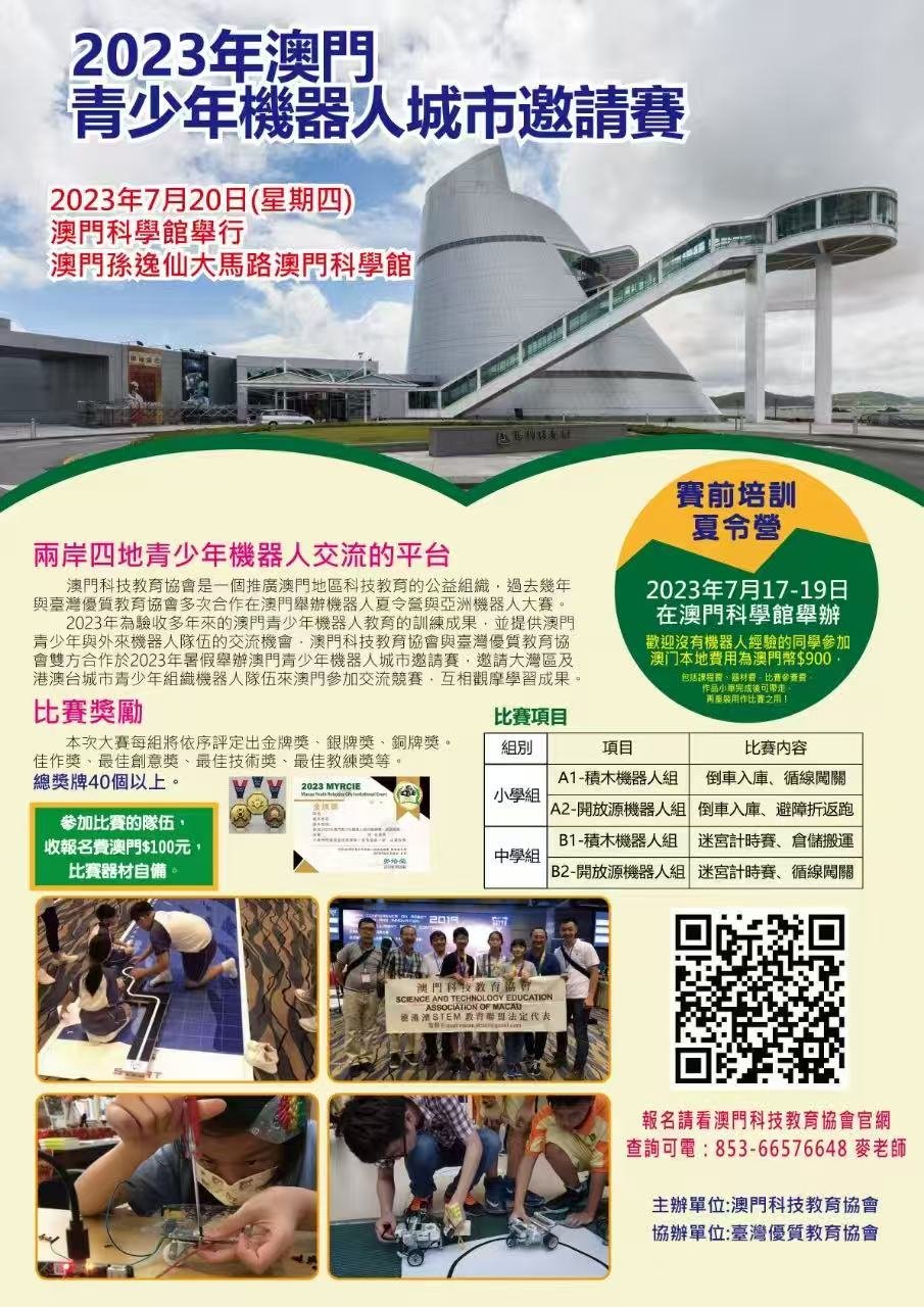 繼澳門科技教育協會在澳門科學館主辦的2023年澳門青少年機器人城市邀請賽之賽前夏令營(7/18-19)後,比賽日(7/20)已於當日五點完滿結束,近百名大會裁判、工作人員、海峽二岸參賽學生、學生家長、學校教練/帶隊老師們早上共聚澳門科學館會議廳,氣氛十分熱鬧,比賽過程亦十分緊張,感謝台灣楊教授之悉心指導,及輔導老師們的熱心協助,在比賽中大家最終都有很好的表現,得獎的同學們都受到很大的鼓舞,其他同學都感到激勵,大家在歡樂中結束今次的活動!